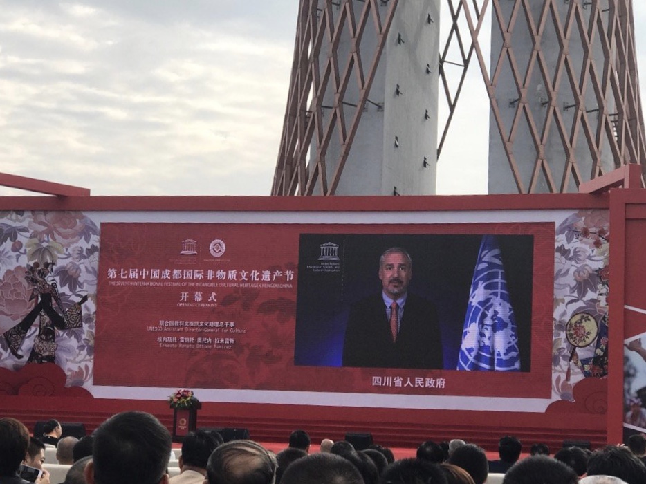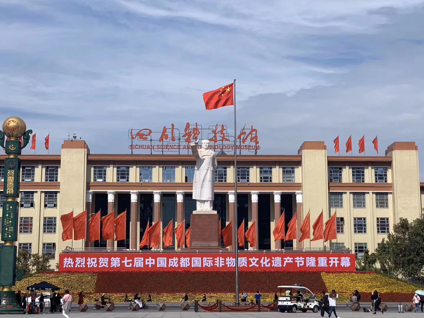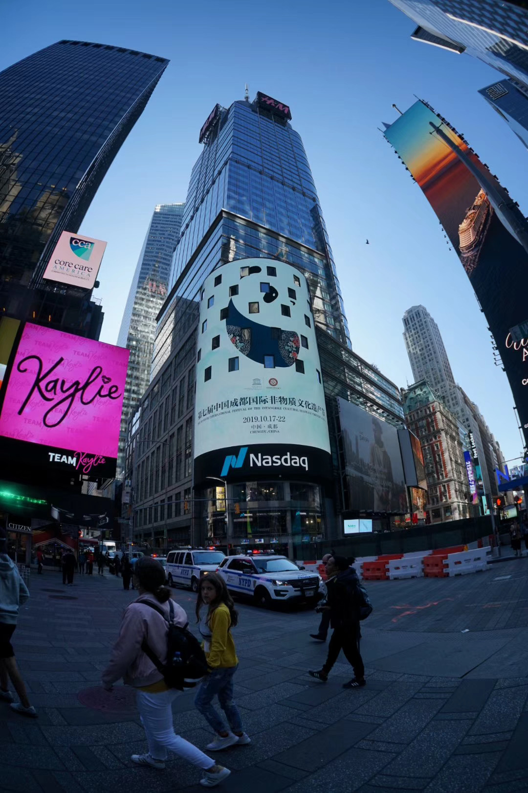 魅力映像视觉设计团队三十余稿近一年的设计打磨为第七届中国成都国际非物质文化遗产节设计的形象作品亮相美国纽约时代广场“世界第一屏”,各大媒体高频互动,户外大牌与园林景观重点覆盖,报纸电视广播新媒体全面启动,向世界展示中国非遗之美。